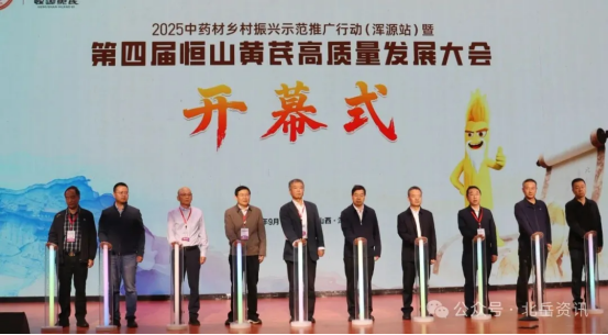 隨著趙昱清宣布2025中藥材鄉村振興示范推廣行動暨第四屆恒山黃芪高質量發展大會啟動,吳海東、張強、戴小楓、楊弘、鄭文科、郭巧生、王世超、李慶華、蘇坡、趙昱清共同按下啟動鍵。